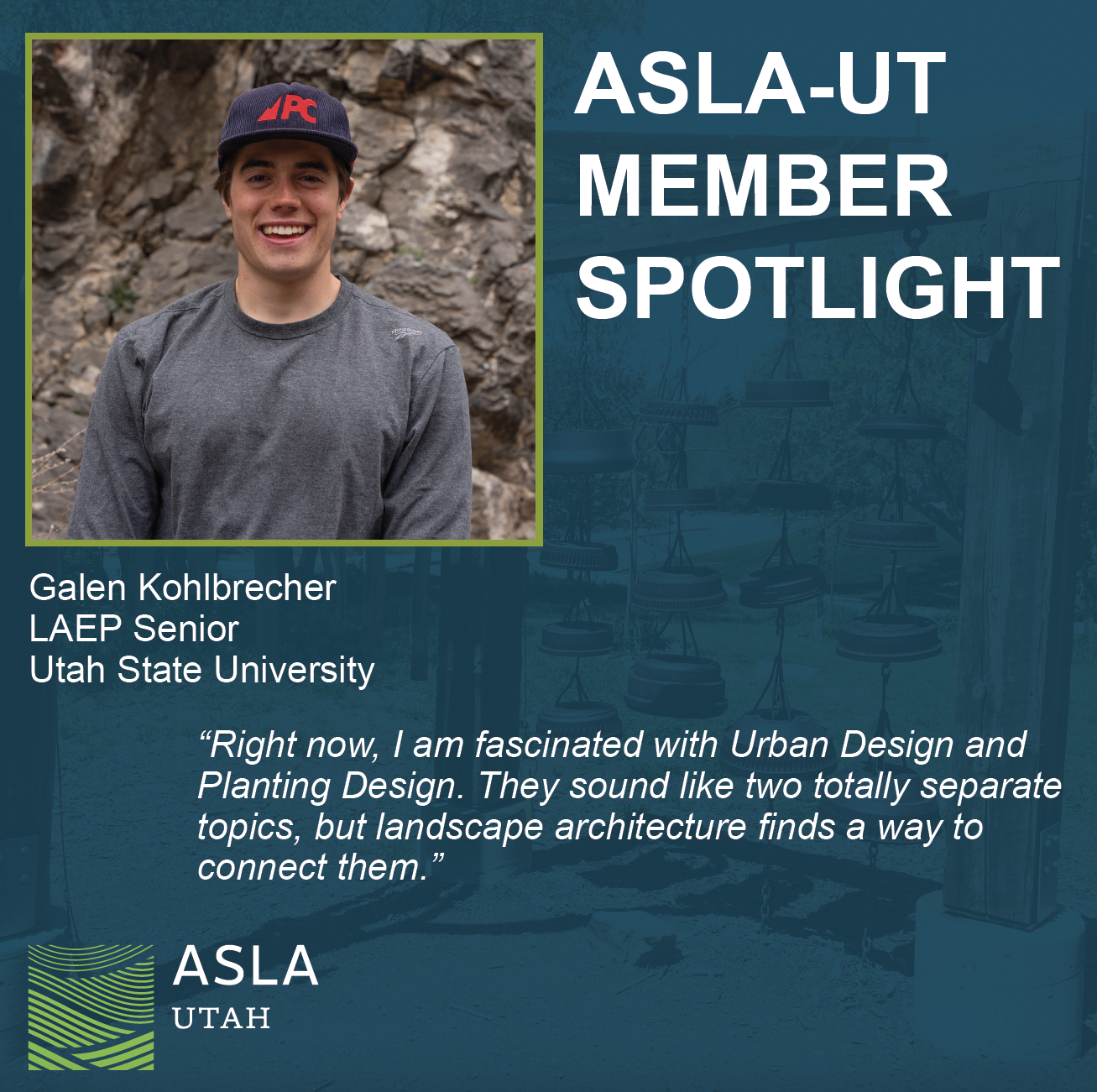 Who are you and where are you from? My name is Galen Kohlbrecher, and I grew up in Illinois. I am a Junior studying Landscape Architecture and Environmental Planning at Utah State University.